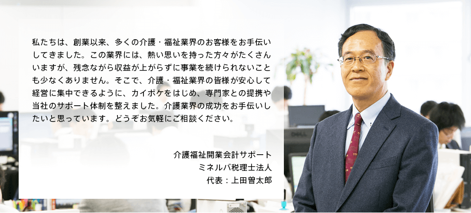 こうした介護・福祉業界の起業家や経営者の皆さまに寄り添い、